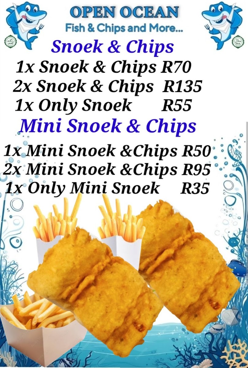 Welcome to Open Ocean Fish and Chips Halal, where flavor meets tradition right in Langebaan, South Africa. This charming eatery specializes in serving mouth-watering, halal-friendly fish and chips, offering generous portions at unbeatable prices. Signature dishes include crispy Hake and Snoek paired with perfectly fried chips, all for as low as ZAR 50.00.
